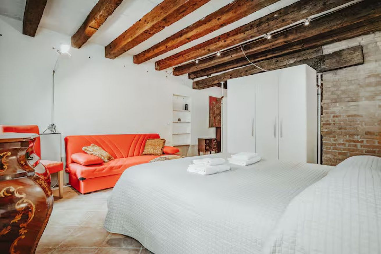 Immagina di svegliarti nel cuore di Venezia, in un autentico monolocale veneziano con travi a vista, affacciato su una tipica corte silenziosa.