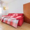 Proseguendo lungo il corridoio, troverete la sala da pranzo, un ambiente accogliente e raffinato. Un divano lussuoso, che può essere facilmente trasformato in un letto singolo, offre un posto comodo per un ospite aggiuntivo. Questa stanza è perfetta per riunirvi intorno al tavolo da pranzo, sia che si tratti di una colazione illuminata dalla luce del mattino o di una cena dopo una giornata di esplorazioni in città. Per il vostro intrattenimento, una Smart TV di ultima generazione con Amazon Prime Video, YouTube e Netflix è a vostra disposizione, permettendovi di rilassarvi e godervi i vostri film o serie preferiti la sera.